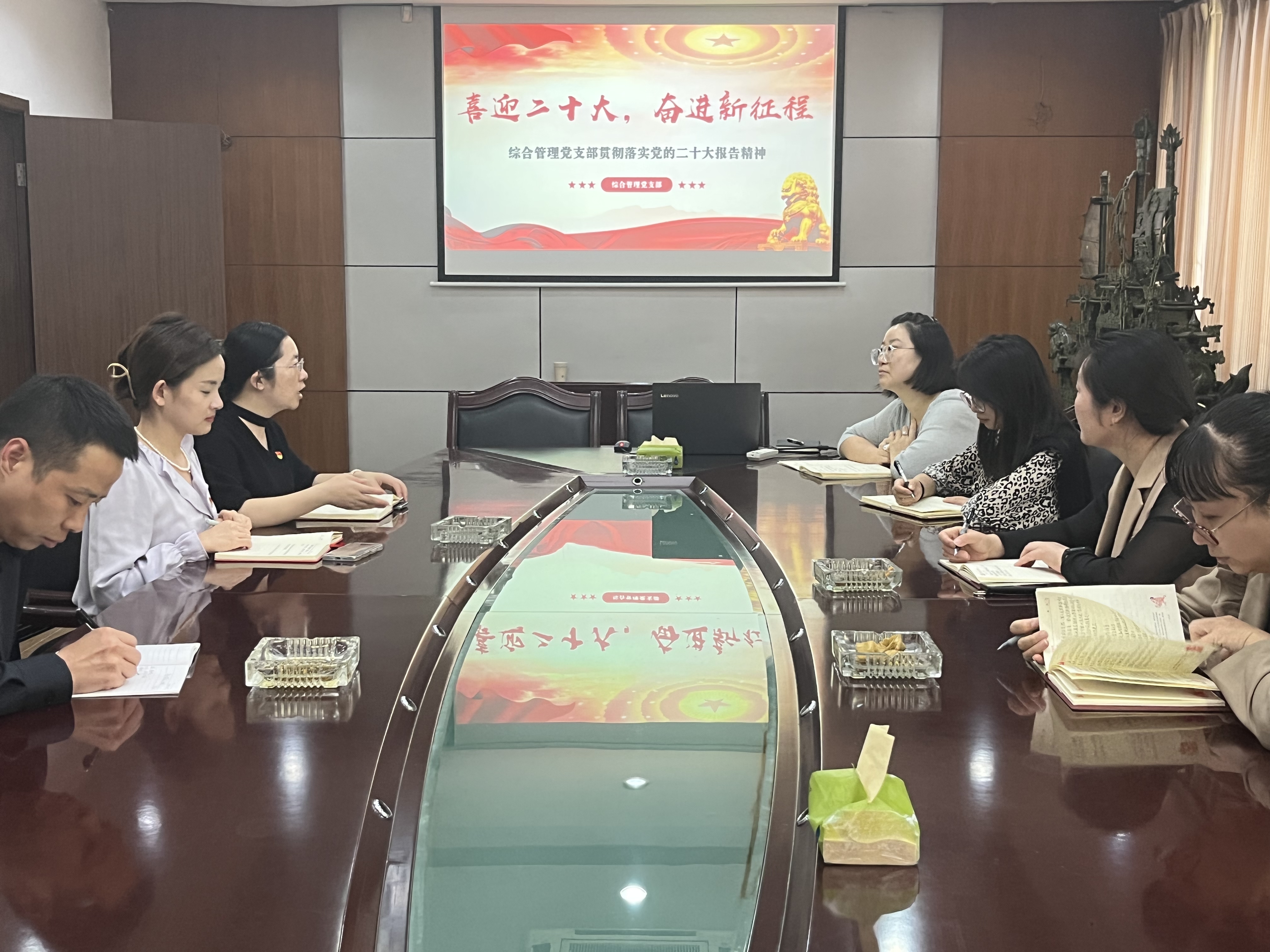综合管理党支部组织支部党员、入党积极分子开展“喜迎二十大,奋进新征程”专题学习会,集中学习了党的二十大工作报告精神,并开展了交流研讨。会议强调,要坚定贯彻落实党的二十大精神,以更加饱满的工作热情和积极向上的工作态度,全身心投入到各项工作中,切实将学习成果转化为推动工作的强大动力,全力以赴为实现公司高质量发展贡献力量。